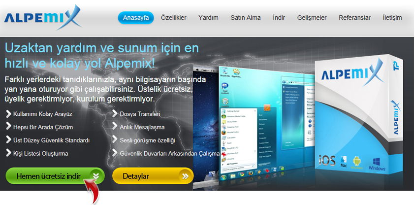 Açılan sayfada "Hemen ücretsiz indir" seçeneği ile programı indirebilirsiniz.