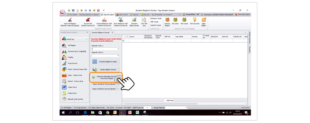 • Ana Makina Sabit Tanımlarda Belirleyeceğiniz Sürede Bakanlığa Bağlanarak Güncel Yibf Ruhsat Bekleyen Yibf ve Hakedişleri Otomatik Olarak İndirir. Ayrıca Müdahale Etmeniz Gerekmez