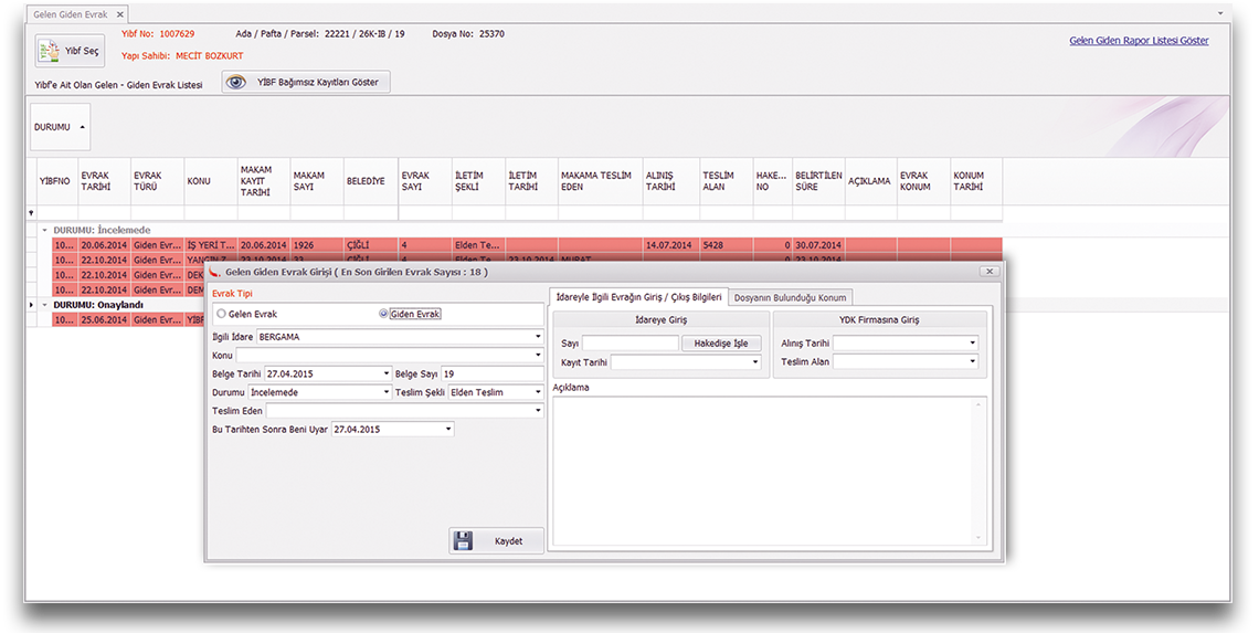 • İlgili idareye verilen evrağın hangi tarihlerde birimler arasında geçiş yaptığını, kimde olduğunu takip edebilirsiniz.