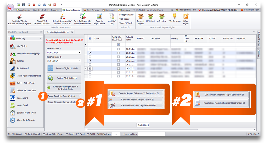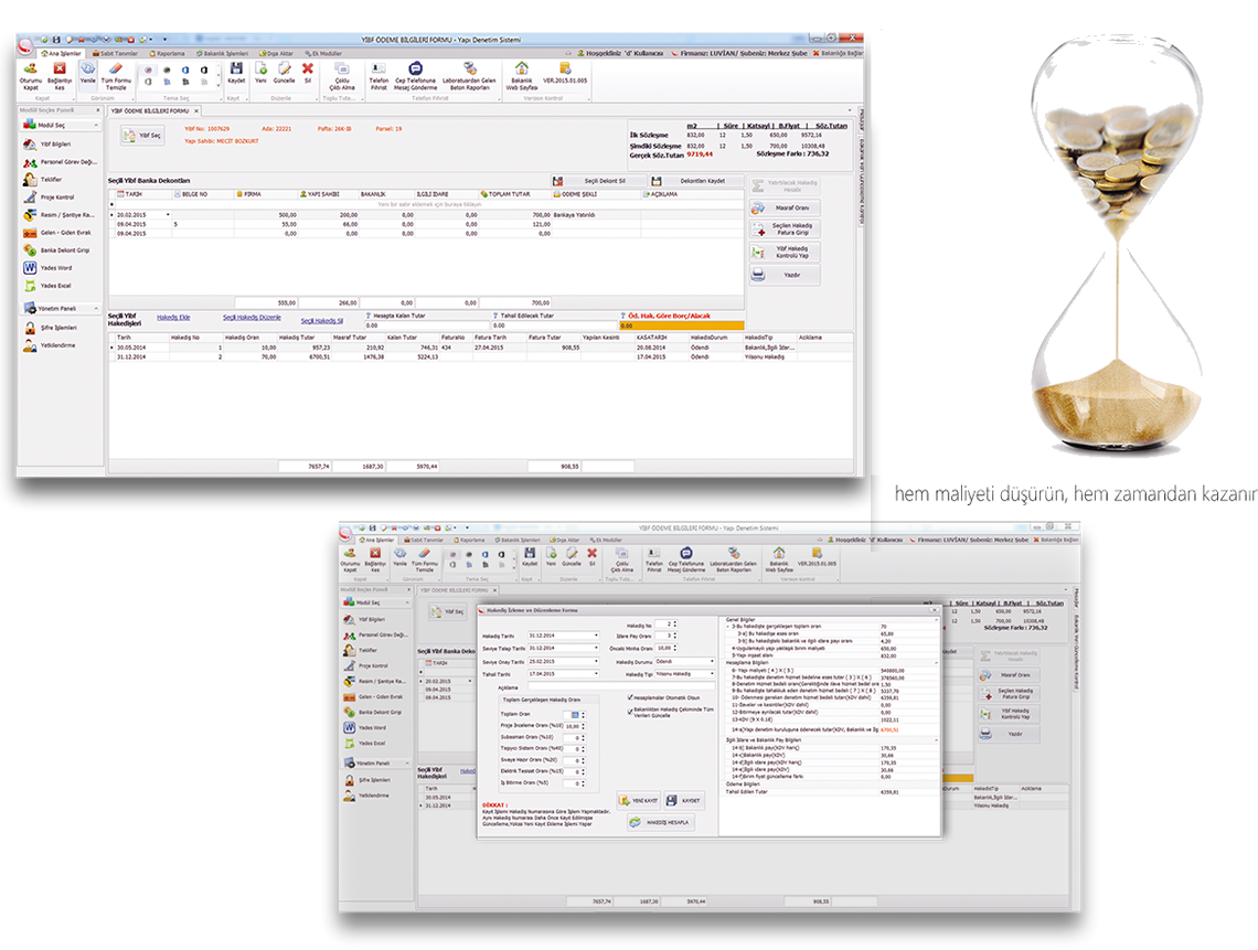 Yapı denetim firmalarında en yoğun iş süreçlerinden olan hakediş dosyası hazırlamaya yönelik hazırlanmış profesyonel bir modüldür. Bu modül sayesinde program sizin yerinize bakanlığa bağlanarak hak ediş ve