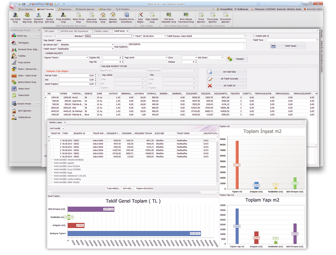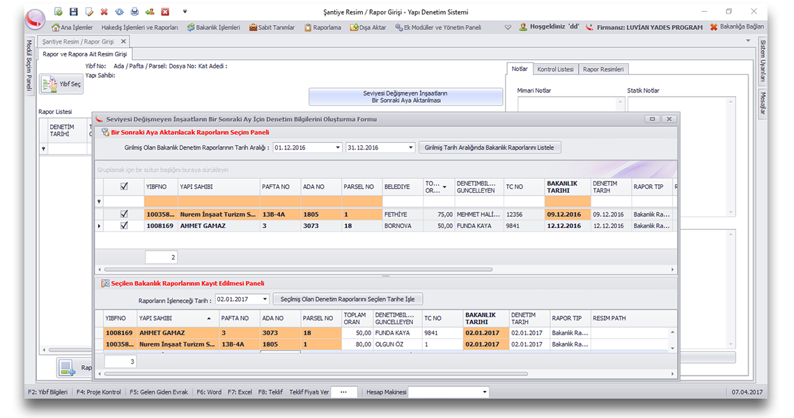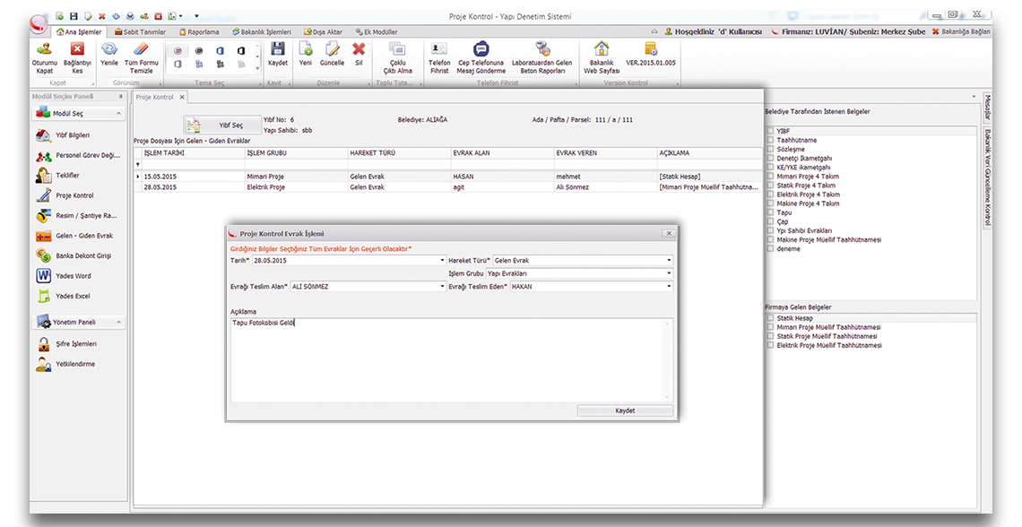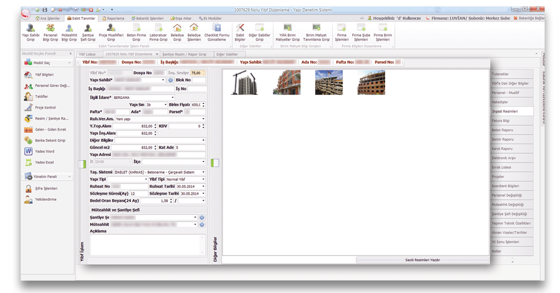 için özel hazırlanmış yapı denetim yazılımı - yönetim sistemidir ve Yapı Denetim Kurumunda