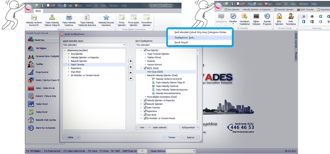 Kullanıcı bazlı olarak kendi menülerinizi oluşturabilir, menülerinize dilediğiniz ismi verebilir, kullanmadığınız butonları kaldırabilirsiniz.