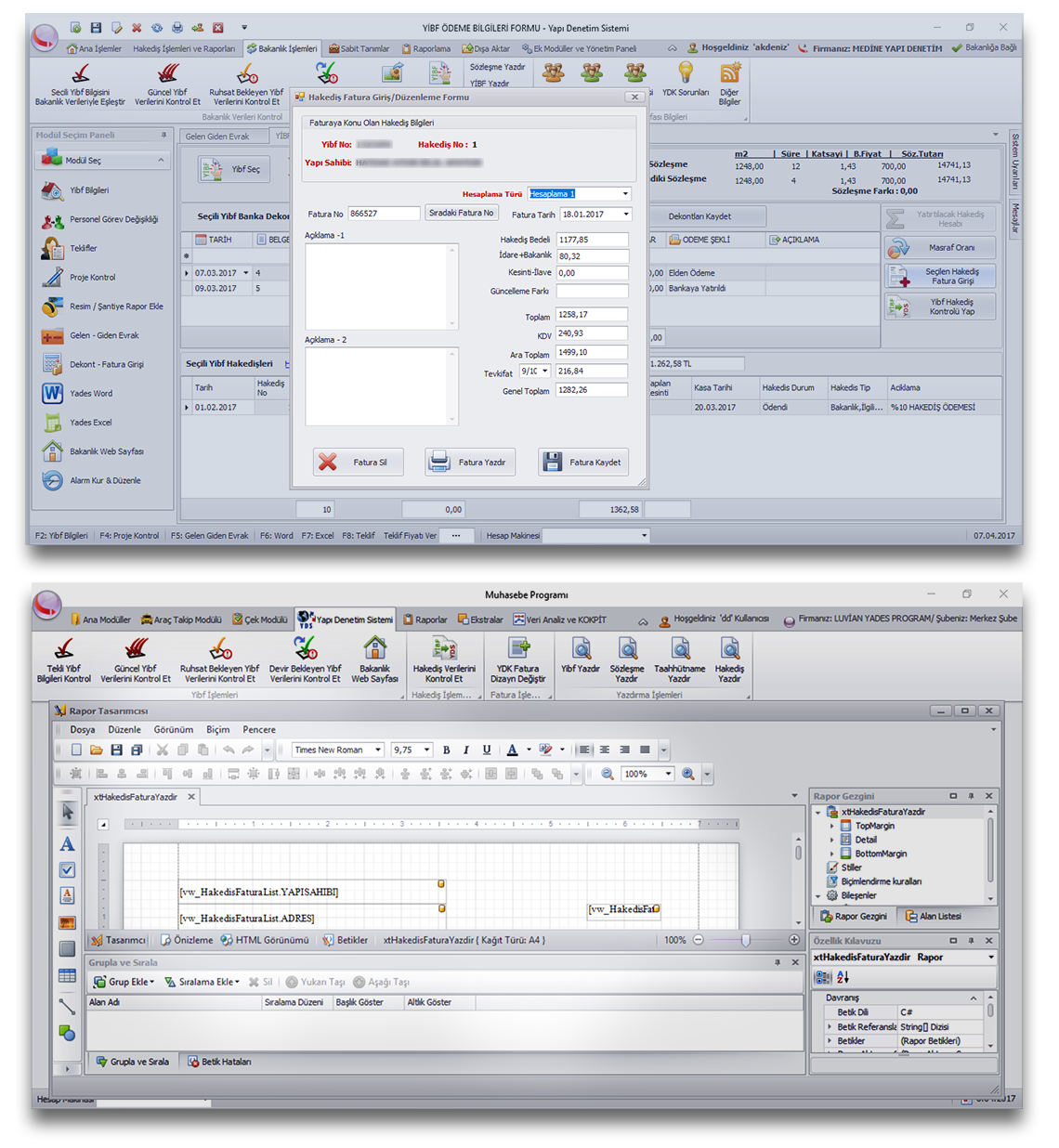 Hak edişlerinizdeki tevkifatlı ya da tevkifatsız tüm faturalarınızı yazdırabilmeniz bu modül ile mümkündür.